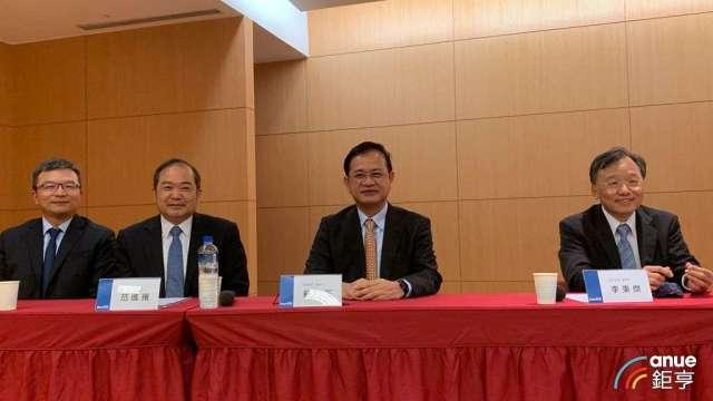 右起為富采董事長李秉傑、隆達董事長蘇峯正、晶電董事長范進雍、富采財務長張博儀。(鉅亨網資料照)