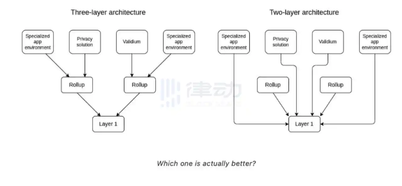 在我看來,所有這三個願景基本上都是合理的。專用數據壓縮需要自己的平台的想法可能是最薄弱的主張 - - - 設計具有通用基礎層壓縮方案的 L2 非常容易,用戶可以使用特定於應用程序的子壓縮器自動擴展,但除此之外,這些使用案例都是合理的。但這仍然留下一個大問題:三層結構是實現這些目標的正確方法嗎?將驗證、隱私系統和定製環境錨定到 L2 而不是僅僅錨定到 L1 有什麼意義?事實證明,這個問題的答案相當複雜。