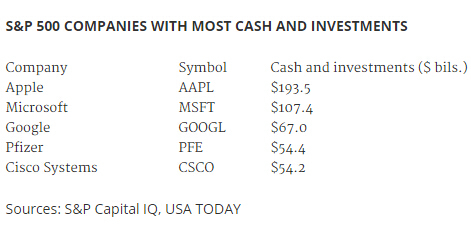 美股蘋果現金儲備達1935億美元 超微軟谷歌總和鉅亨網新聞中心2015-04-28 18:03 作者:宋星 【TechWeb報導】4月28日消息,據國外媒體報導,截止第二財季末,蘋果現金儲備達到創記錄的1935億美元。 這裏的現金儲備包括現金、現金等價物、短期有價證券、長期有價證券,總計1935億美元,比微軟谷歌總和還多。如上表所示,微軟為1074億美元,谷歌為670億美元。 第一財季結束時,蘋果的現金儲備高達1780億美元。現金儲備通常被認為是衡量公司規模的一個很重要的指標。文章標籤更多鉅亨講座看更多講座公告上一篇UPS一季度盈利超預期下一篇日本2030年光伏發電比例擬控制在7%0