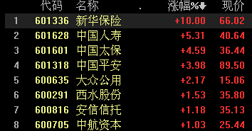 金融3劍客爆發 新華保險漲停