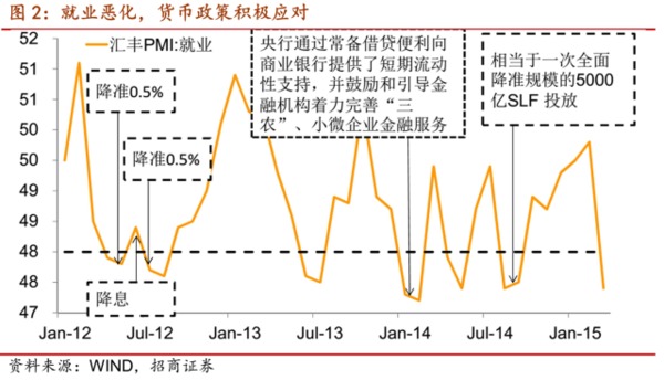 我們在二季度宏觀經濟展望中就談過經濟持續低迷已經對就業市場造成不利影響。3月匯豐PMI 就業指數跌至47.4%提示我們就業市場可能已經出現了顯著惡化。2月31個大城市城鎮調查失業率為 5.1%,這其實已經逼近政策所能容忍的失業率上限,去年3月城鎮調查失業率達到5.17%,次月貨幣政策就開始了定向放松。我們還一貫將領導人外出考察是否涉及就業問題作為觀察國內就業形勢變化的一種變通方法。