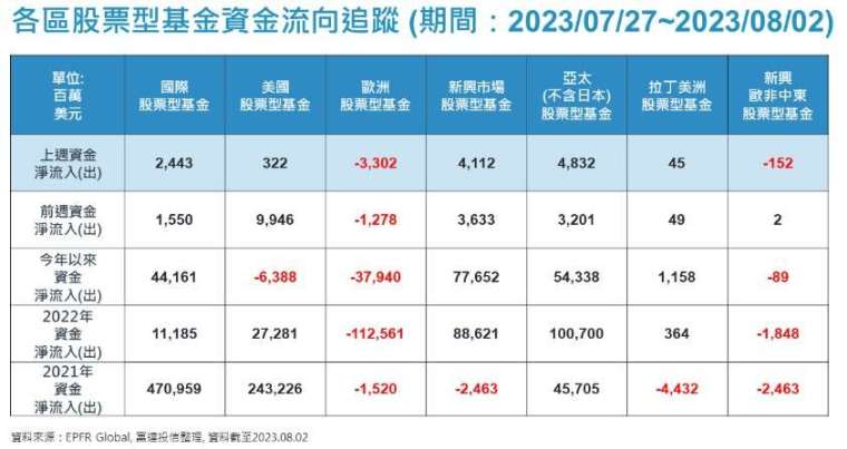 整體股票型基金連 2 週買超,單週買超 47.6 億美元。國際股票型基金連 2 週買超,單週買超 24.4 億美元。