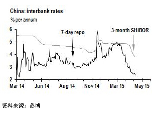 存款準備金率展望:我們認為存款準備金率的下調主要作為一種沖銷工具,用於抵消外匯儲備情況的變化,我們預計未來存款準備金率不會進一步下調。這反映出我們預期未來資金流出將會減輕(近期市場普遍預測發生變化,認為相比年初,人民幣兌美元的貶值幅度將會下降)、2015年全年貿易順差將高於去年水平的觀點。但是,這種觀點並不確定,因為資金流通常具有波動性。此外,存款準備金率下調可能將用來支援購買地方政府債券。值得注意的是,如果央行下調存款準備金率,並使用地方政府債券替代銀行資產負債表中的存款準備金,其影響將明顯不同於標準的存款準備金率下調(在這種情況下,由於替代情況,對銀行貸款將不會產生擴張效應)。