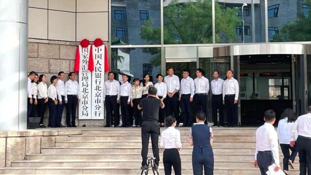 據《第一財經》報導,周五上午 8 時 18 分左右,中國人民銀行北京市分行舉行揭牌儀式,掛出的新標牌為:中國人民銀行北京市分行、國家外匯管理局北京市分局,並保留中國人民銀行營業管理部的標牌。