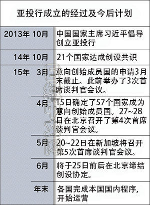 在2014年秋季就創設達成共識之初,決定加入亞投行的國家僅為亞洲的21個。但是,隨后歐洲國家也爭先恐后地表示加入,使得意向創始成員國目前達到57個。歐洲國家認為自己是將亞投行提升為“真正的國際機構”的功臣。