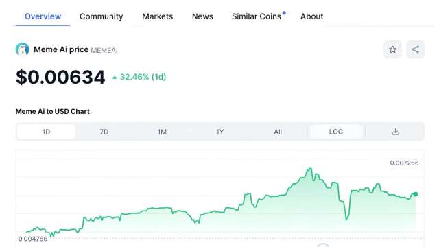 Meme AI 代幣在 2024 年初推出,通過 AI 技術生成迷因並提供 NFT 市場,旨在為用戶帶來創意和娛樂。此前由於市場環境變化和投資者信心的波動,其價格一度下跌。然而,最新數據顯示,Meme AI 代幣價格在近日出現了 32.46% 的上升,最新價格達到 0.00634 美元,顯示出一定的市場回暖跡象。