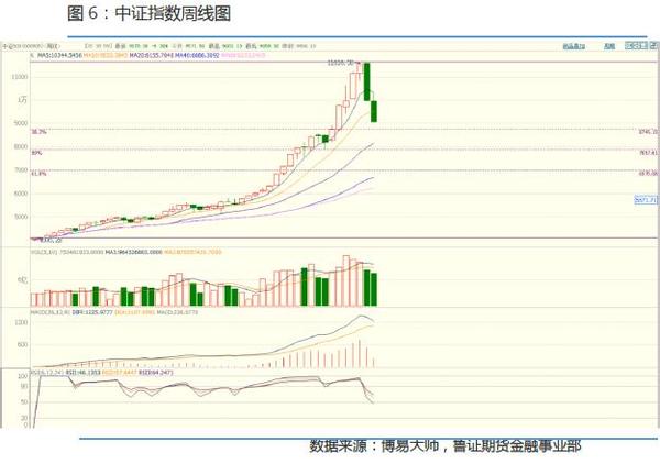 而中證 500周線圖上來看,下方即將面臨前期黃金分割0.382重要支撐 位,料短期繼續深跌的概率不大 。