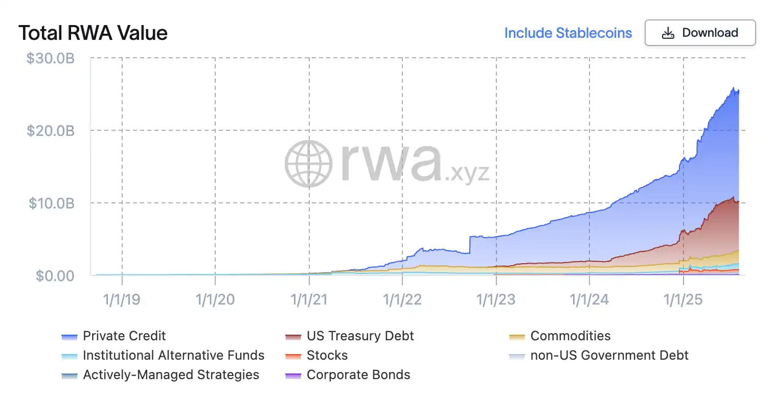 歷史上幾乎沒有與美國國債的深度、穩定性和信用品質相符的資產。優質政府債券是機構投資組合的基石,用於安全存放資本並作為其他投資的抵押品。加密世界利用這些相同的基本面,自穩定幣成為加密的最大「出入口」之後,雙方的關係比任何時候還要深。