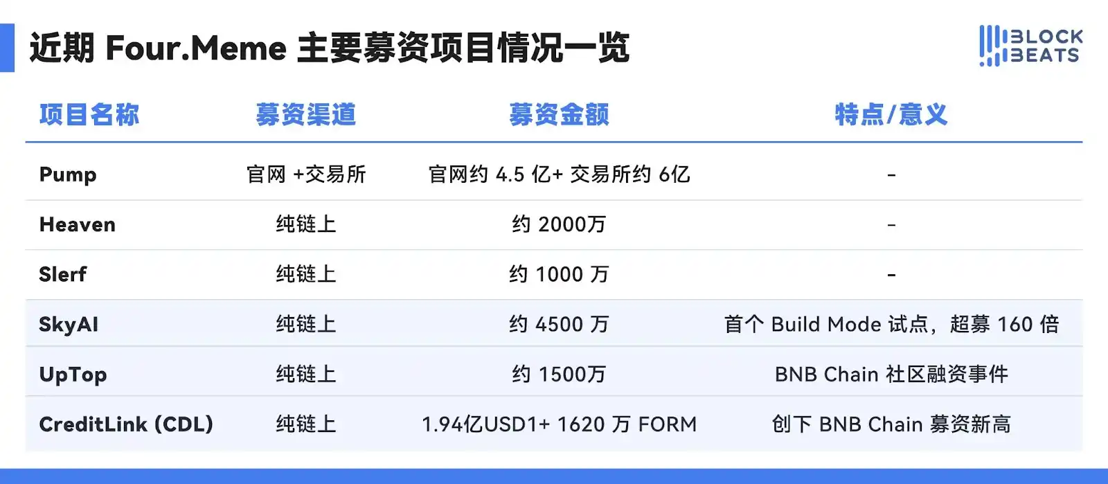 如果說 2024 年 Pump 模式代表了當時加密募資的主流敘事,那麼之後的 Slerf 以及其他純鏈上預售,則展示瞭如何直接在鏈上構建透明度與信任。 Slerf 籌得約 1000 萬美元,雖然體積有限,但它讓市場首次直觀感受到資金路徑完全透明所帶來的信任感,為後續 Four.Meme 的機制創新提供了重要參考。