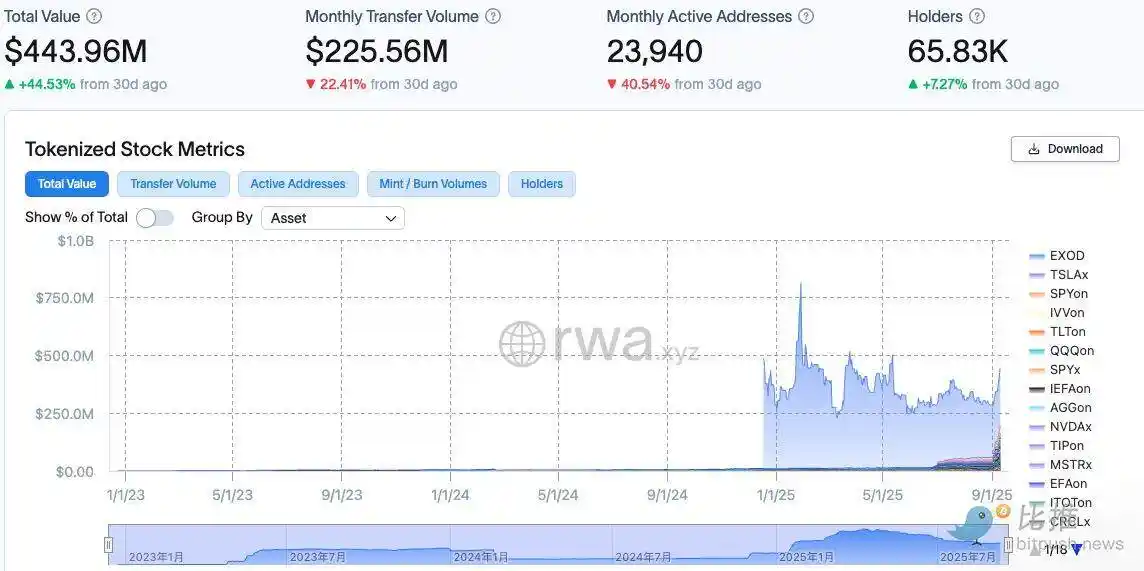 更何況,代幣化股票市場的現況相當小眾。根據 RWA.xyz 數據,鏈上的代幣化美股(如 TSLA、AAPL)總規模不足 5 億美元,遠不及 ETF 市場的數兆美元。即使 Robinhood 和 Kraken 已經上線代幣化股票交易,這類產品依舊侷限在加密原生人群。