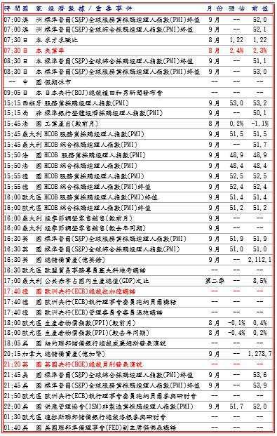 據義大利工業部長烏索稱,預計政府將宣布今年的赤字將降至 3%,達到歐盟規定的上限,而且歐盟貿易執行委員會委員謝夫喬維奇表示,目前為止美國仍尊重歐盟貿易協議中的全部內容,但歐盟統計局公布歐元區 8 月失業率為 6.3% 高於預期,打壓歐元兌美元回落至 1.1681 低點。預估今日歐元兌美元阻力於 1.1740-60,支撐於 1.1650-70。