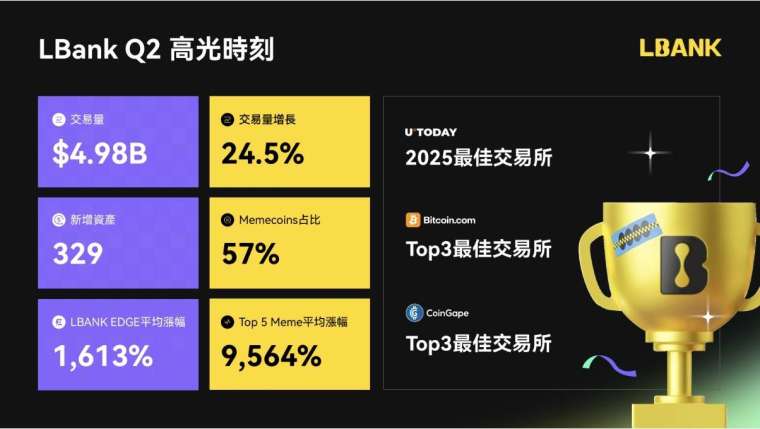 品牌聲譽無法只靠自說自話。 5~6 月,專業媒體 CoinGape 在《Top11Low‑FeeExchanges2025》中將 LBank 評為前三,稱其 0.10% Maker/Taker 費率在深度足夠的前提下 “為預算敏感用戶提供了罕見友好度”;另一篇《Best Crypto Exchanges 2025》則繼續把 LBank 評為前三,此外,LBank 還榮獲了 Bitcoin.com 評選的 “2025 年 6 月最佳比特幣交易所 Top 3” 殊榮,強調其零重大安全事故與豐富資產池的平衡能力。同一時期,CoinGecko 透過兩份專題報告將「百倍幣比例全球第一、首發資產漲幅第一、Meme 市佔率 CEX 第一」三頂桂冠賦予 LBank 。在此基礎上,Bitcoin.com News 亦將 LBank 評選為全球 Top 7 加密交易所,從另一個角度印證了其在安全性、資產多樣性與市場熱度上的綜合競爭力。對於看重第三方資料驗證的機構資金,這種「三重保險」正是它們敲開合規風控大門前想要的答案。