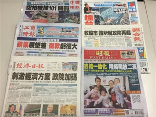 《台灣主要報紙頭條要聞》