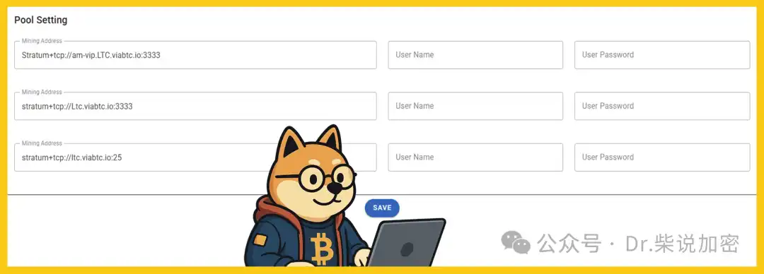 進入礦機的網頁端控制面板,在管理介面設定網址,連接埠號碼,礦工名稱,密碼等基本資訊。