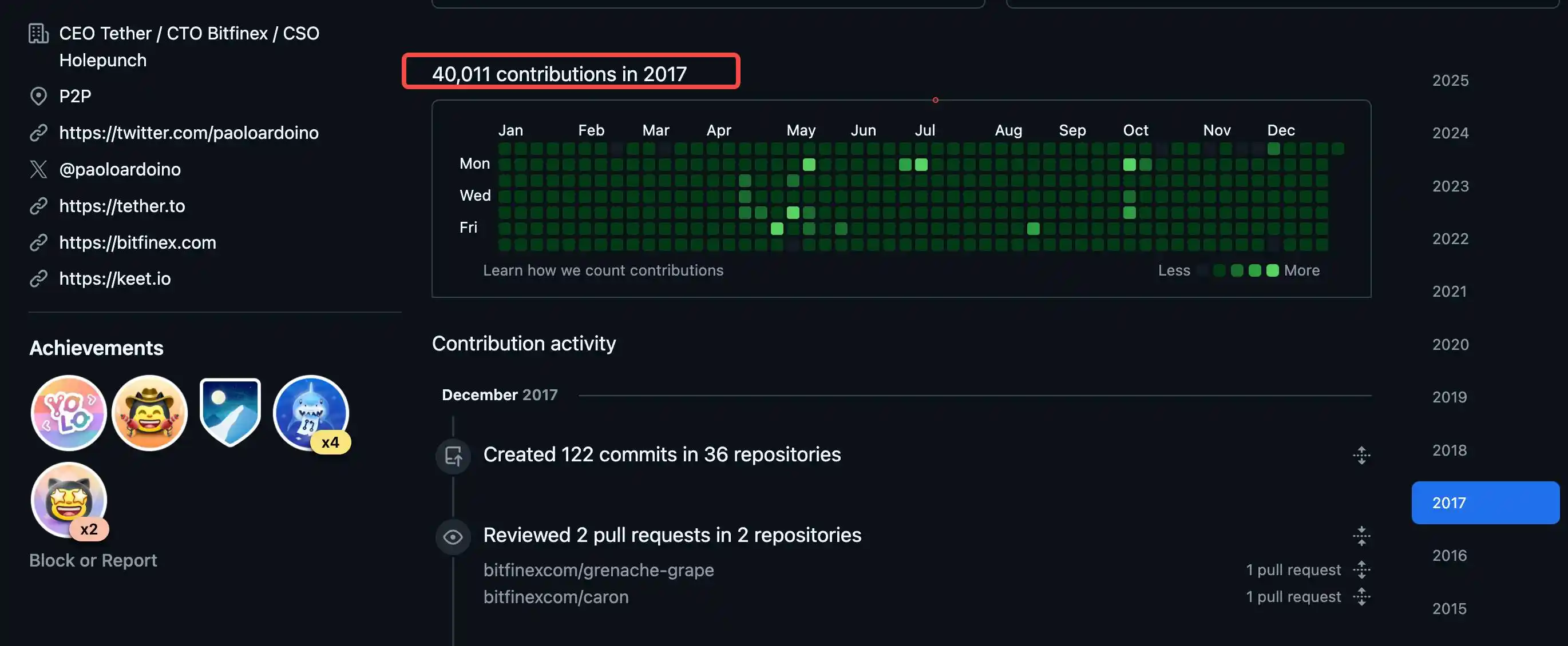2017 年,Ardoino 在 GitHub 上提交了 40,000 次程式碼,平均每天超過 100 次。近乎偏執的工作強度,定義了這位義大利程式設計師的上昇路徑。