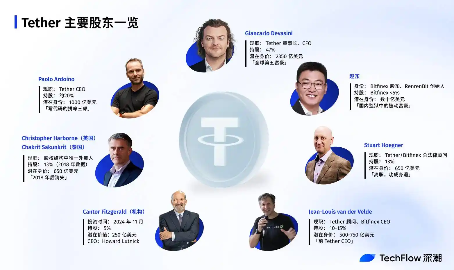 那些直接或間接持有 Tether 股份的實際控制者們,如果交易達成,他們可能將成為加密貨幣行業有史以來最富有的一批人。