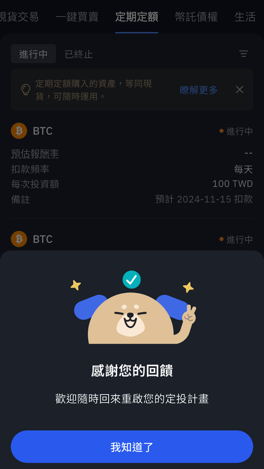 STEP.3 定期定額投資計劃創建成功!