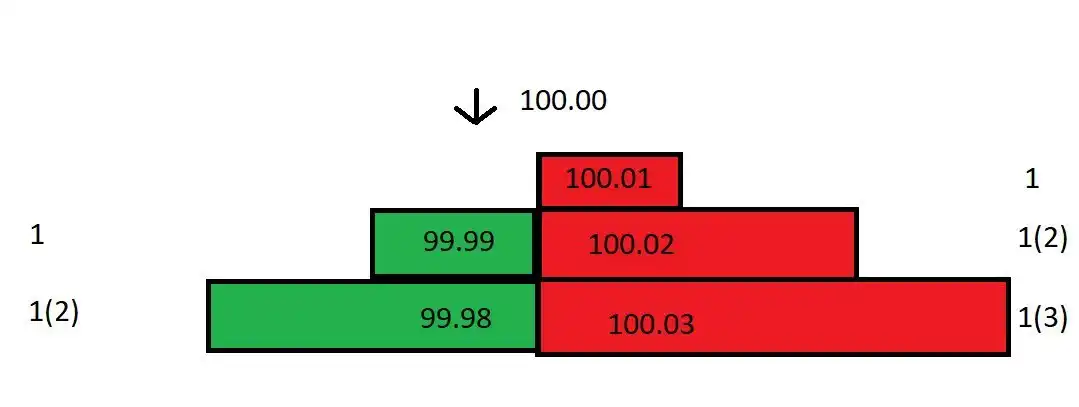 儘管你的買一 (100) 和賣一 (100.01) 的 spread 只有 0.01,但是實際利潤高達 0.03!