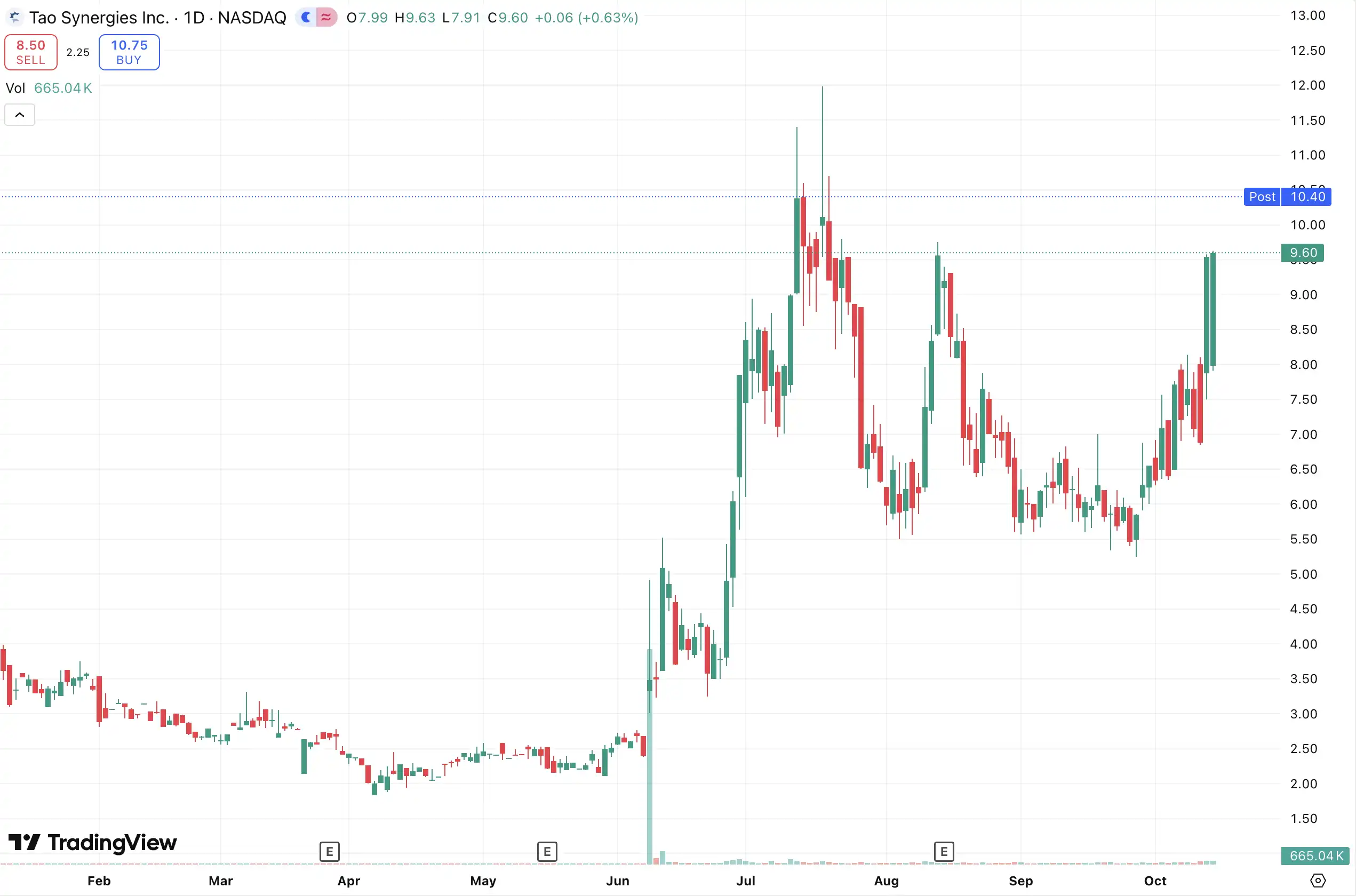 10 月 14 日,美股上市公司 TAO Synergies Inc.(納斯達克代碼:TAOX)宣布完成一項總額 1,100 萬美元的 Digital 融資