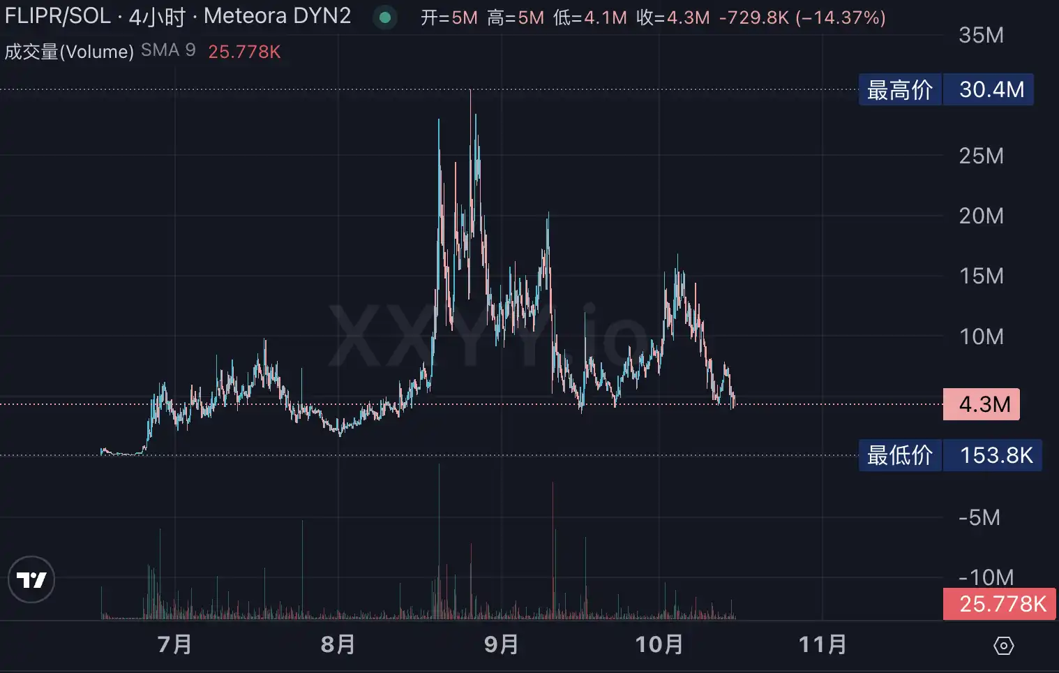 而其代幣 $FLIPR 自 6 月上線以來,最高點達 3000 萬美元市值,現熱度退卻後回調至 430 萬美元週邊。