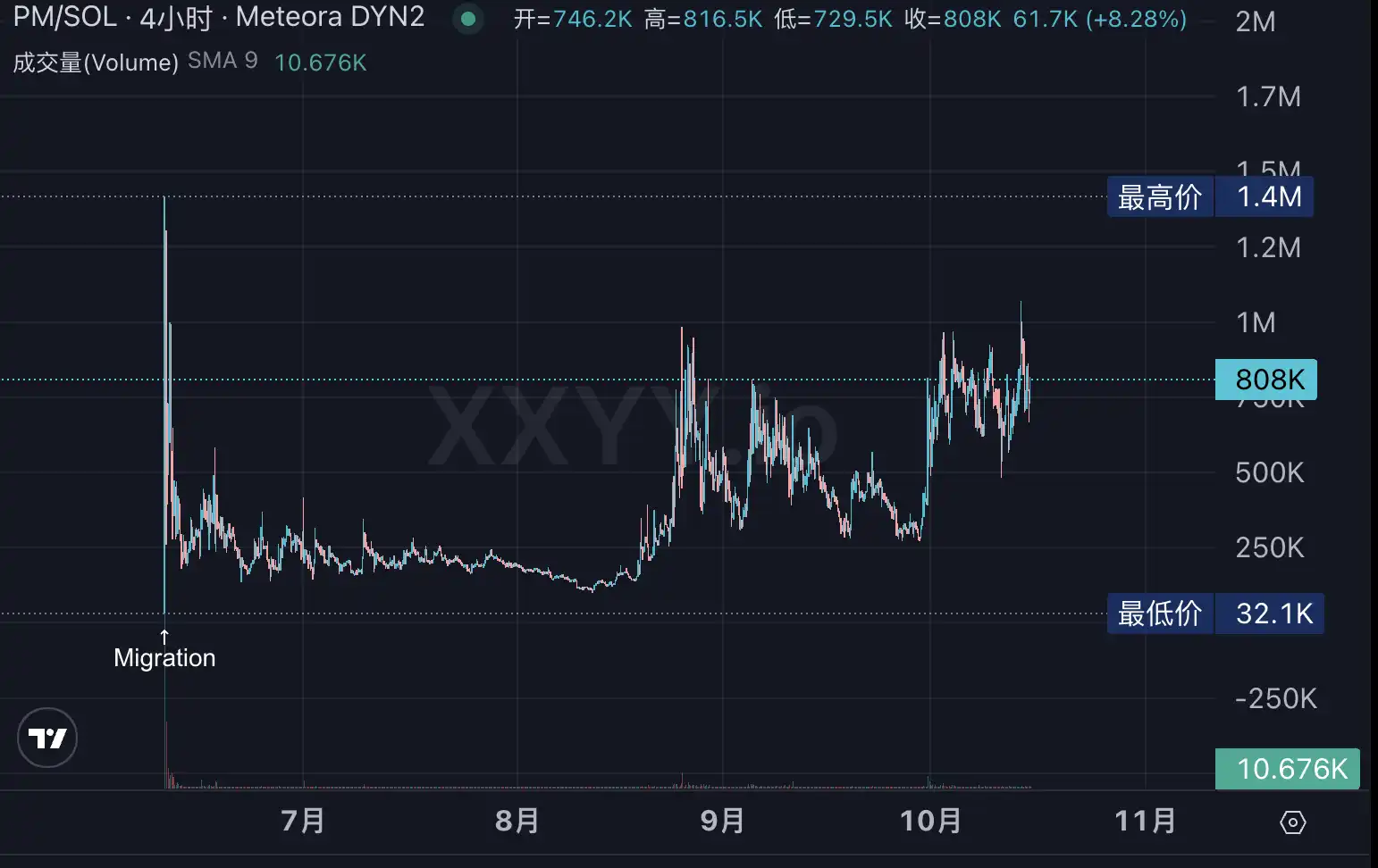而從工具轉型成平台後,其代幣 PMX 也身價飆升,一路從 1800 萬美元飆升至 5700 萬美元市值,現已回調至 2300 萬美元。