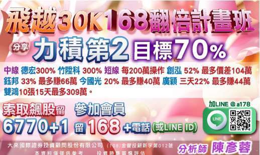預告 力積電 (6770-TW),三個月翻倍 100%。【力積電 第 2】,即將發動目標翻倍,加 line 留言【777+2】索取。