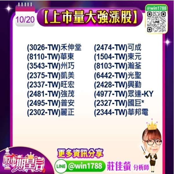 被動元件族群明顯吸引資金回流,火力全開,(2327-TW) 國巨 今日走揚,主因包括,美國被動元件通路商 (SPRS-US) Surge Components 第三季財報亮眼,營收年增 29%,激勵整體族群走強,國巨明日將與芝浦電子在日本舉行記者會,傳出併購題材,(8043-TW) 蜜望實 ,(6173-TW) 信昌電,與 (2375-TW) 凱美,也亮燈漲停,其中凱美為國巨集團旗下鋁質電容廠,主力業務涵蓋電子電機、通訊、光學等領域,產品廣泛應用於 AI 伺服器與車用電子等高成長市場,近期營收穩健成長,年增率維持正向,受惠 AI 與車用題材發酵,吸引主力籌碼進駐,隨著 AI 伺服器與車用電子需求持續升溫,高規電容產品出貨動能增強,加上母公司國巨股價走強,帶動凱美人氣攀升,被動元件族群多頭氣勢延續,後市仍具續航力, (5328-TW) 華容,(6862-TW) 三集瑞 -KY,(6155-TW) 鈞寶 , (3236-TW) 千如,等多檔個股亮燈漲停,AI 及 PCB 族群表現續強,台灣電路板展即將登場,買盤動能持續延續,資金聚焦在 AI 伺服器、半導體材料與高階封測相關族群,指數沿 5 日線推升,顯示多方支撐力道穩固,技術面維持多頭排列格局,短線仍具攻高動能。