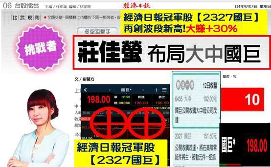 2025.9.14 經濟日報領先預告 (2327-TW) 國巨 ,151.5=>198。