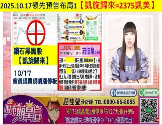 2025.10.17 股市期皇后節目領先預告 (2375-TW) 凱美,再度狂 +8%。