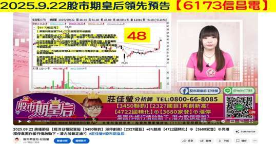 2025.9.22 股市期皇后節目領先預告 (6173-TW) 信昌電,狂噴 +8%,再創新高!
