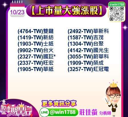 (1605-TW) 華新麗華集團,旗下(2492-TW)華新科,同步上漲近 5%,帶動整體被動元件族群走強,(6173-TW)信昌電,隸屬華新科集團,主攻 MLCC、晶片電容電阻及介電瓷粉原料,深耕 AI 與車用領域,近期法人與主力資金同步進駐,營收年增穩定、毛利率持續改善,短線多頭動能強勁,受惠 AI 伺服器、電動車與 5G 基地台等終端需求升溫,法人看好信昌電基本面穩健、獲利具成長性。