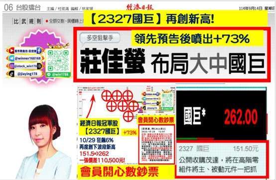 2025.9.14 經濟日報領先預告 (2327-TW) 國巨 + 73% 再創新高!