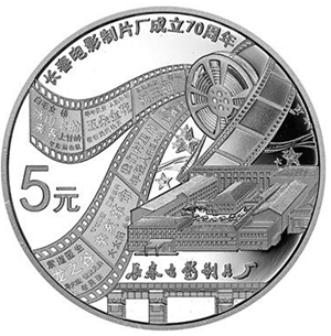 15.552克(1/2盎司)圓形銀質紀念幣背面圖案為長春電影制片廠部分代表性影片名稱及正門、舊址博物館圖案等組合設計,並刊“長春電影制片廠成立70周年”字樣及面額。
