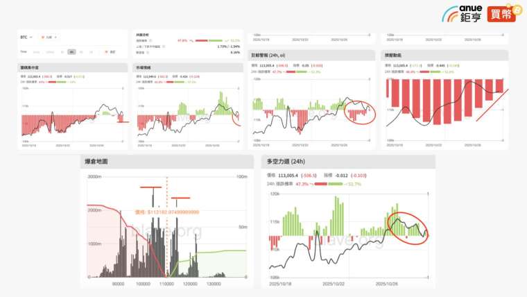 美國總統川普與中國國家主席習近平的「川習會」30 日終於在釜山登場,會談歷時約一個半小時,與會結果針對芬太尼關稅砍半、稀土協議、農產品回購等等議題有進一步結果,不過比特幣聞訊卻一度走跌至 10.7 萬美元,隨後回穩至 11 萬美元。數據平台 Blave 分析,比特幣目前情緒與多空力道都偏弱,美國聯準會已宣布降息一碼,可持續關注比特幣籌碼與清算情況。