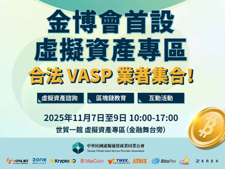 金博會將於 2025 年 11 月 7 日至 9 日在台北世貿一館舉行,「虛擬資產專區」參與業者有:HOYA BIT(禾亞數位科技)、ZONE Wallet(拓荒數碼科技)、MaiCoin/MAX(現代財富科技)、台灣大虛擬資產交易所(富昇數位)、ATRIX(跨鏈科技)、BitoPro(幣託科技)等。專區內不僅有拍照打卡活動,各家業者也準備豐富的互動體驗與專業諮詢,歡迎有興趣的民眾親臨現場了解安全且合規的虛擬資產體驗!
