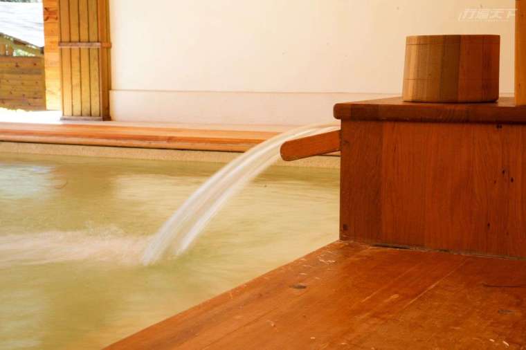 3. 大眾風呂湯池周邊採用純天然的台灣檜木,有水時容易濕滑,請勿站立。