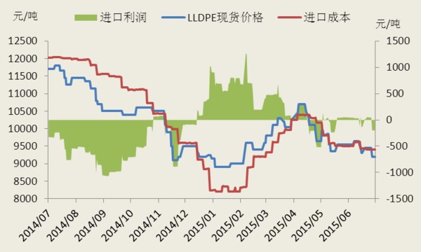 圖9:lldpe進口盈虧