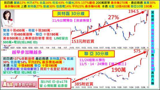 彥蓉做節目以真績效做節目,最近 16 天帶會員與留電話粉絲勝率 90%,前四週 週週收割 137% 翻倍達陣,兩週前 轉買 #富喬 大賺 30% 200 萬跟單最多賺 60 萬。上週 轉買 #凱崴 30%,# 信昌電 14% 平均 20% 200 萬跟單最多賺 40 萬。本週 每十張 #光聖 480 萬,# 聯亞 190 萬 #英特磊 41 萬 27%。 (過去績效不保證未來)。資金 500 萬以上,歡迎點下面 LINE 連結留言 500 萬 + 電話 給彥蓉 ,我們一起打拼。