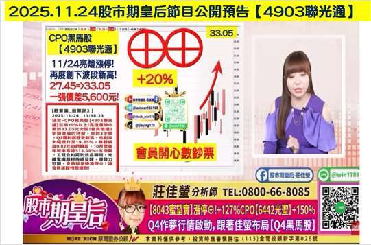 2025.11.24 股市期皇后節目領先預告 (4903-TW) 聯光通