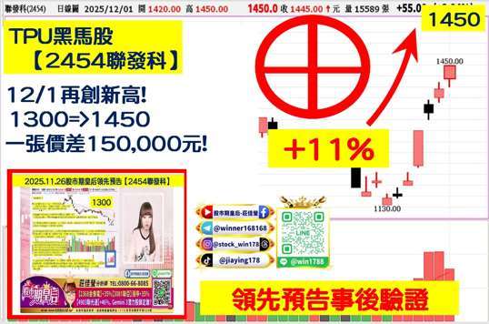 IC 設計龍頭(2454-TW)聯發科,上漲 3.58%,收在 1445 元,展現漂亮 V 轉續強點火,帶動相關族群人氣,佳螢通通領先預告在前面!!!