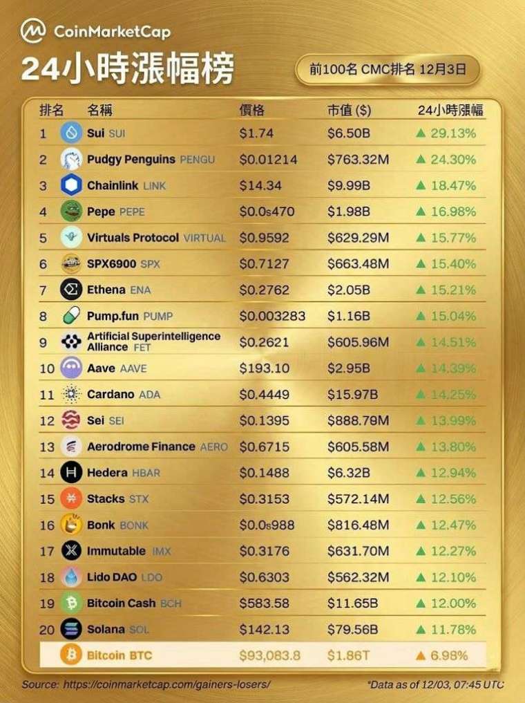 加密幣最新漲幅排行榜|Solana、Sui、Pepe幣強勢勢領跑 迷因幣迎來轉角市
