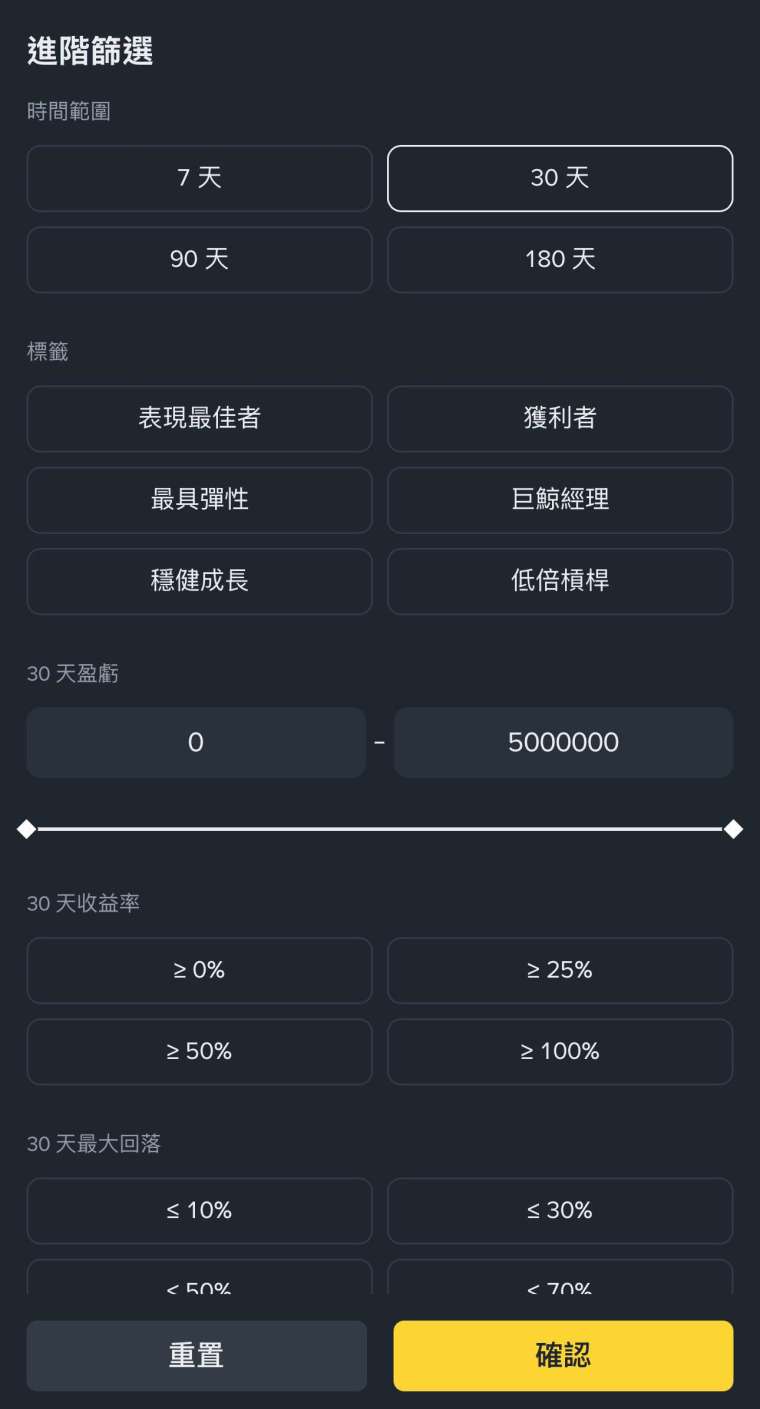 小技巧:善用幣安跟單的排行榜、篩選功能