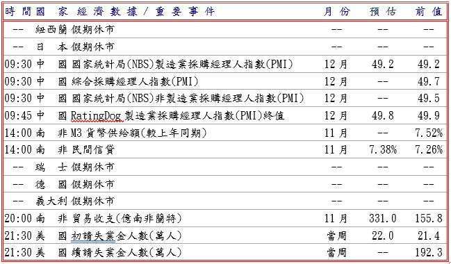 據日本財務省宣布,11 月 27 日至 12 月 26 日期間的外匯干預支出為零, 但美國商品期貨交易委員會 (CFTC) 最新數據顯示,4 月的大規模日圓多頭倉位到年底完全逆轉,投機客目前持有小幅日圓空頭倉位;此外,美國聯邦住房金融局 (FHFA) 公布 10 月房屋價格較上年同期增長 1.7%,創 2012 年 3 月以來最小年度漲幅,表明長期低迷的住房市場在可負擔性方面有所改善,另外 12 月芝加哥採購經理人指數 (PMI) 升至 43.5,並據芝加哥聯邦儲備銀行從公共及民間數據中估計,美國 12 月失業率將持平於前值 4.6%,反映招聘或解雇工人的速度變化不大,而且 FED 會議紀錄顯示,12 月降息決定是微妙平衡的結果,內部分歧嚴重,下次會議訂於 1 月 27-28 日舉行,市場目前預計 FED 將維持利率不變,推升美元兌日圓匯價至 156.56 高點。預估今日美元兌日圓支撐於 155.80-156.00,阻力於 156.60-80。