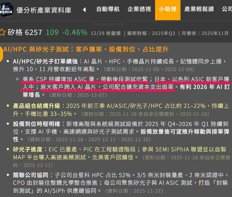 不只美系CSP客戶、還有日本、以色列客戶都持續增加訂單,帶動後段測試需求。