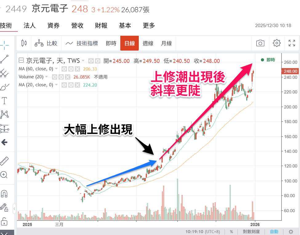 如果只是短期的拉貨、一次性的轉單、或是某個季度的景氣回溫,那上修可能一次就結束,像這種短期因素很難帶來大波段漲幅。