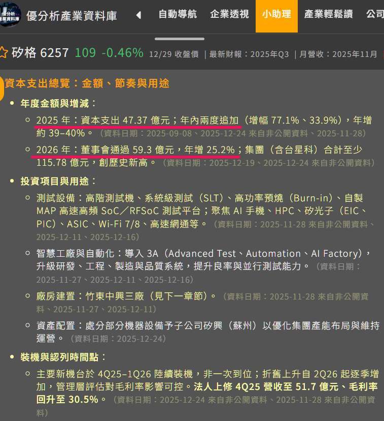 而且從小助理的資本支出內容來看,情況跟矽格很像。
