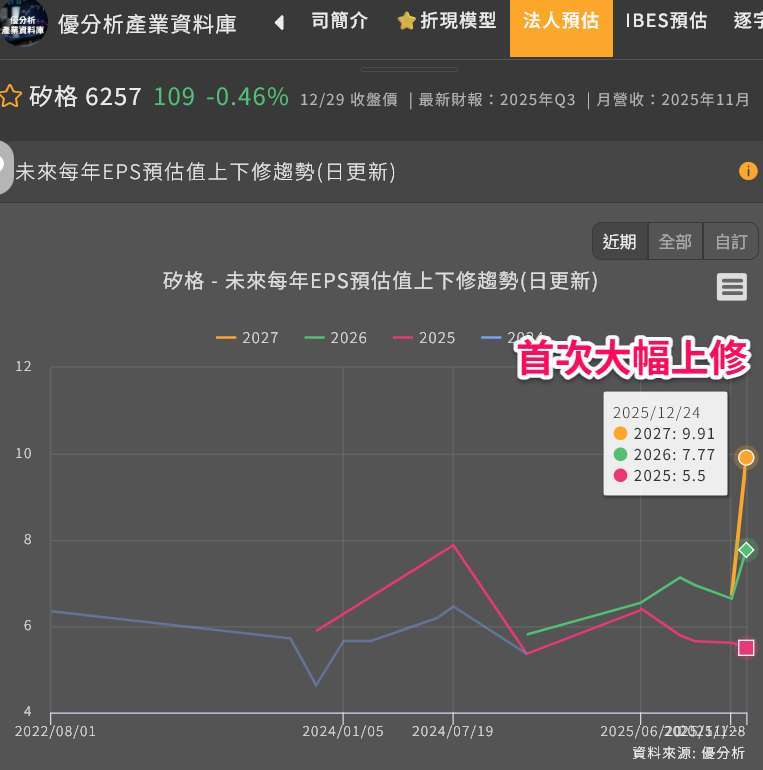 但今天真正引起我注意的是:在這份清單裡,矽格(6257-TW) 2026 年 EPS 被上修了。