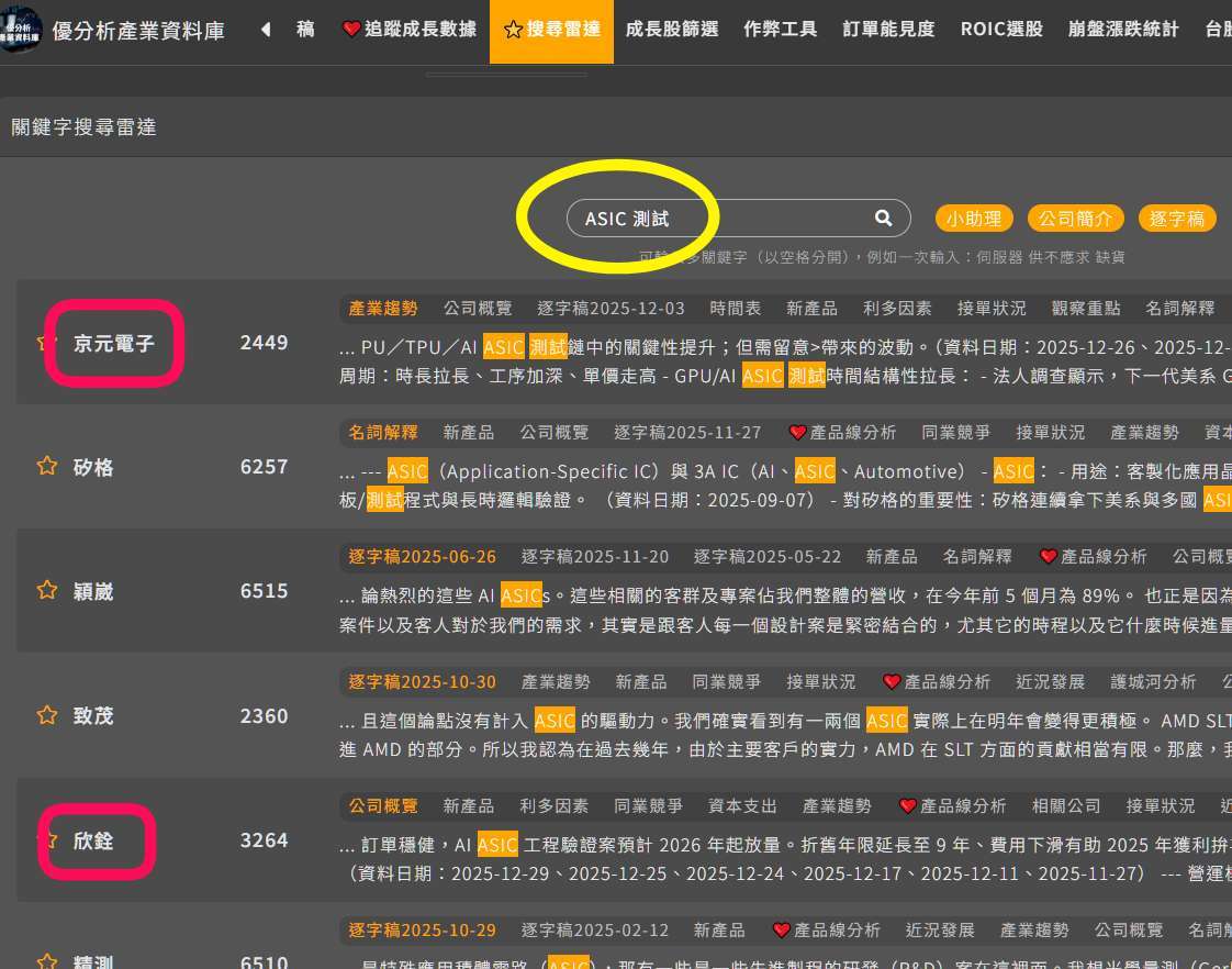 透過【優分析產業資料庫】我們就能用這種新時代的方法,因為我們的時間有限,不可能每檔都看,利用工具就能更高效、更精準的找到應該投入時間研究的目標。