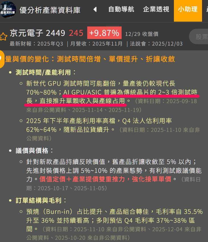 仔細看了一下優分析整理的資訊,你會發現,主要是因為台積電2.5D/3D 測試來不及做,也沒空做,所以測試的工作外溢到其他測試廠,導致最近測試設備與二線測試廠的盈餘出現上修機會。
