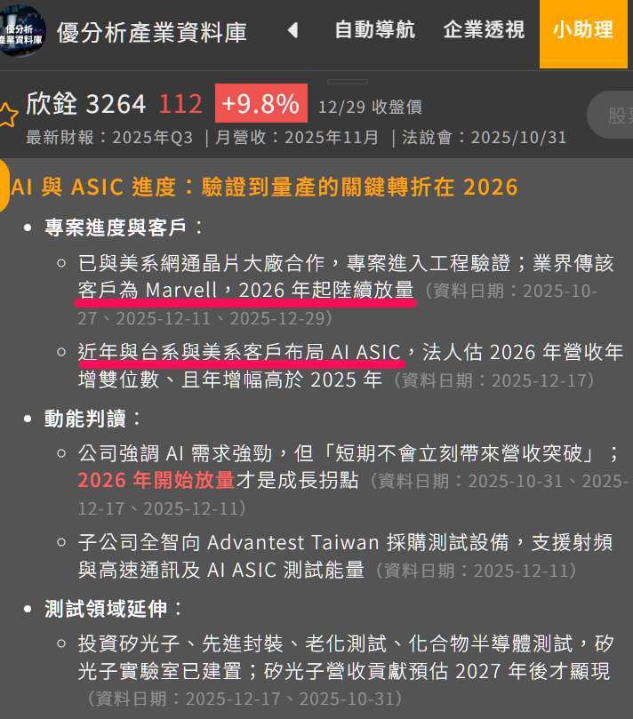雖然欣銓目前沒有公告明年的高額資本支出,但這2天已經連續大漲,背後需求其實完全一樣,都是AI、ASIC。